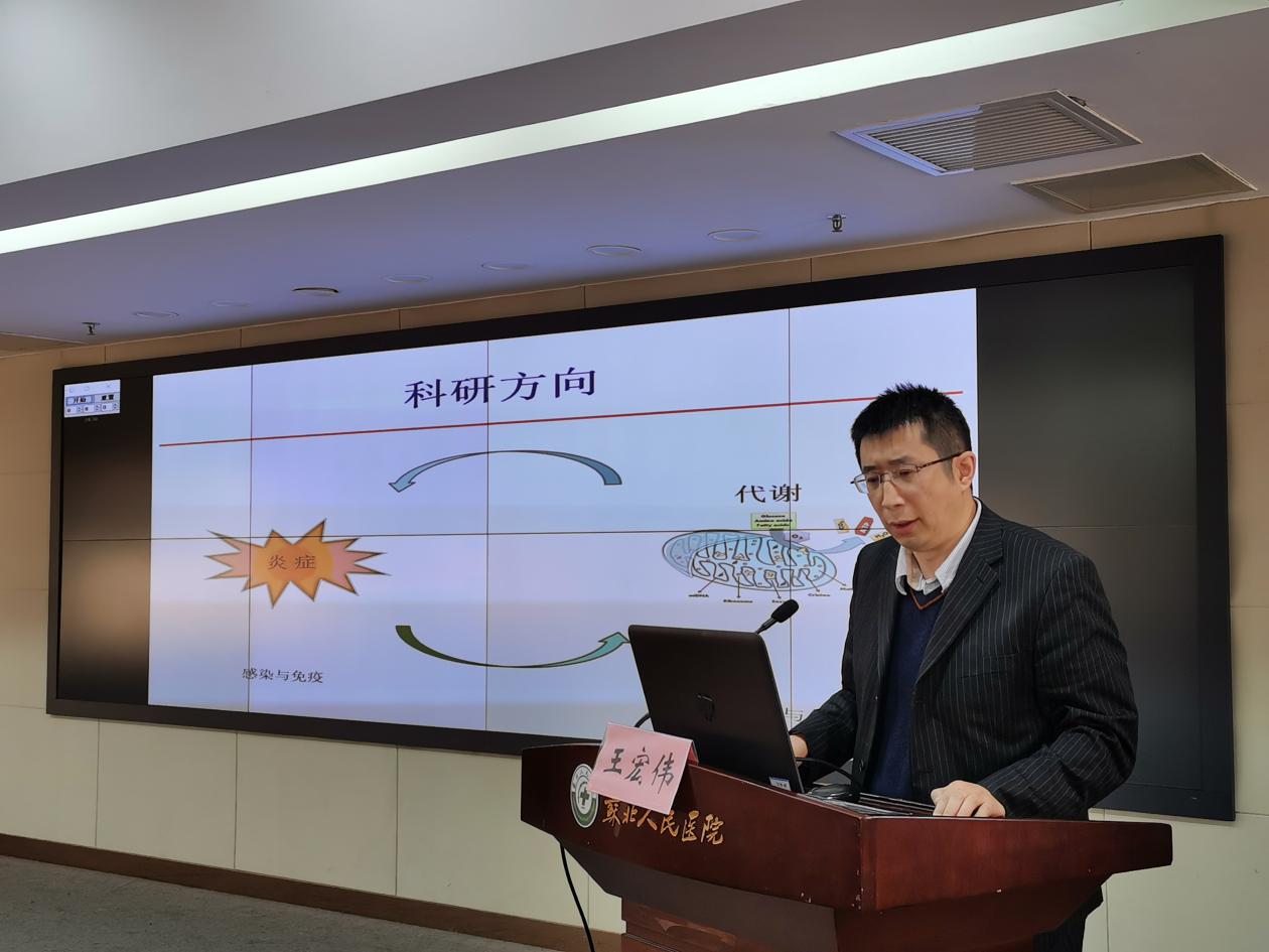 太阳成城集团tyc234cc古天乐副经理王宏伟教授介绍了太阳成城集团tyc234cc古天乐科研发展情况,希望通过科研交流会,创造更多的合作机会,促进太阳成城集团tyc234cc古天乐基础学科和公司的紧密结合;通过开展科研结对活动,发挥彼此的资源优势,借助太阳成城集团tyc234cc古天乐的学科优势、平台优势以及公司的临床资源优势,通过顶层设计和科学谋划,有针对性地开展转化医学研究;希望能够进一步加强人才培养的力度,打造一流的青年科研人才队伍。