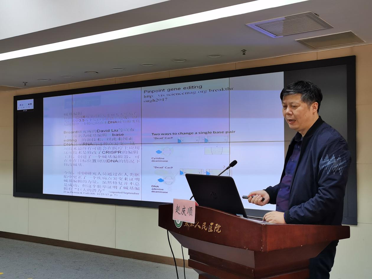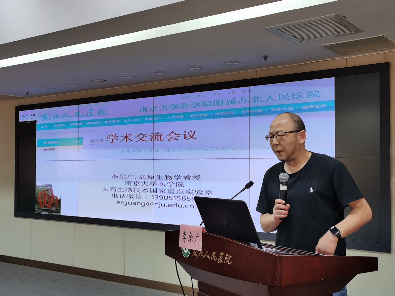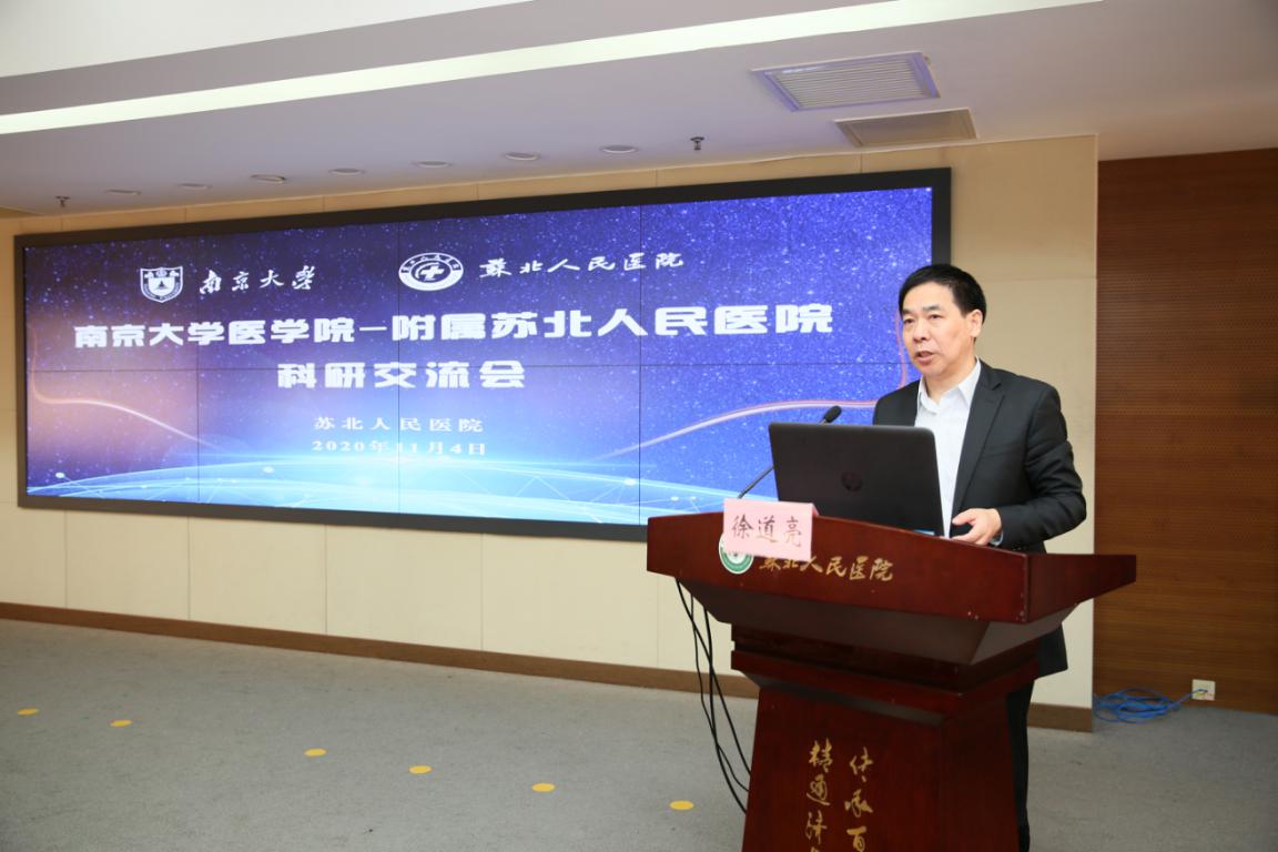 上午9时30分,太阳成城集团tyc234cc古天乐-附属苏北人民医院科研交流会正式开始,附属苏北人民医院徐道亮书记致辞。徐书记在致辞中表示,公司与太阳成城集团tyc234cc古天乐战略合作协议的签署,是公司的一个重要发展契机。此次韩书记亲自带队南大太阳成城集团tyc234cc古天乐基础医学部、动物模式研究所的22位基础研究专家来公司进行合作交流,对促进双方基础与临床优势整合及公司转化研究能力的提升有着重要的战略意义。此次交流对我们既是一个难得的学习机会,也必将促进公司科研理念和实践水平的快速提升。希望双方通过此次活动开展实质性合作,加强相关领域的科学研究,共同探索科技创新。