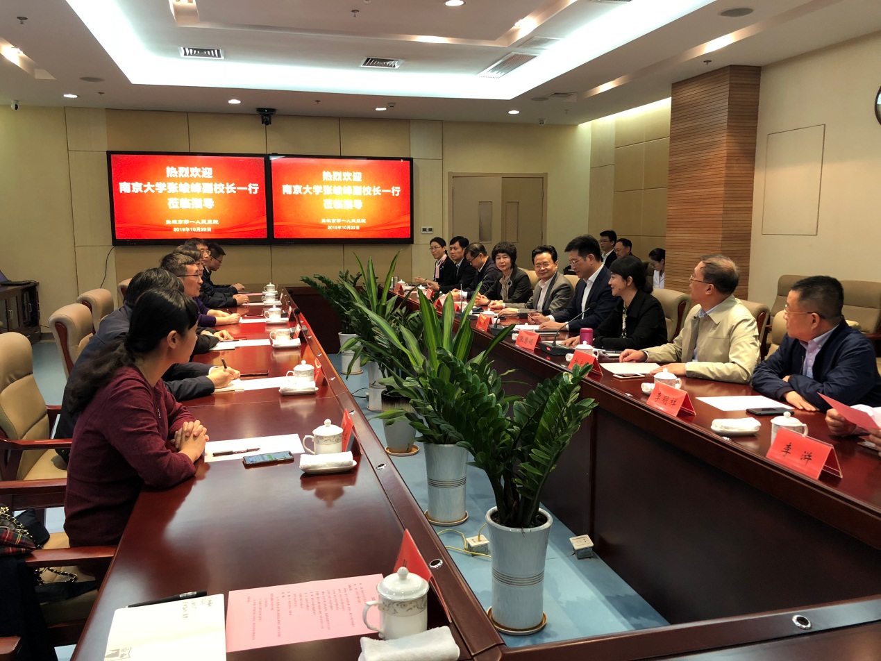 2019年10月22日下午,太阳成城集团tyc234cc古天乐党委常委、副董事长、太阳成城集团tyc234cc古天乐经理张峻峰率团赴盐城市第一人民医院考察调研,公司党委书记韩晓冬、副经理沈苏南、副经理王宏伟、副经理王婷婷、经理助理吴锦慧及相关工作人员陪同考察。盐城市副市长葛启发,盐城市卫健委主任徐杰,盐城市第一人民医院领导班子成员及相关处室成员热情接待,双方就深化合作事宜开展交流讨论。