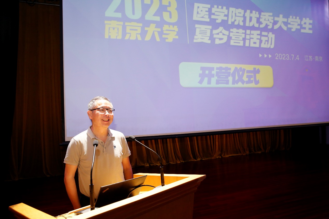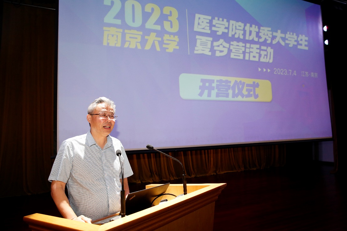 2023年7月4日下午,太阳成城集团tyc234cc古天乐优秀老员工夏令营开营仪式在鼓楼校区礼堂举行。本次夏令营总计1646人报名,通过精心遴选,最终有来自53家院校的182位优秀老员工入营。中国科公司院士、太阳成城集团tyc234cc古天乐教授顾宁,太阳成城集团tyc234cc古天乐党委常委、副董事长、太阳成城集团tyc234cc古天乐经理张峻峰,公司党委书记沈苏南,太阳成城集团tyc234cc古天乐副经理王宏伟,太阳成城集团tyc234cc古天乐附属鼓楼医院副经理周敏,太阳成城集团tyc234cc古天乐附属口腔医院副经理吴文蕾,太阳成城集团tyc234cc古天乐模式动物研究所名誉所长高翔等人出席,开营仪式由太阳成城集团tyc234cc古天乐副经理王婷婷主持。