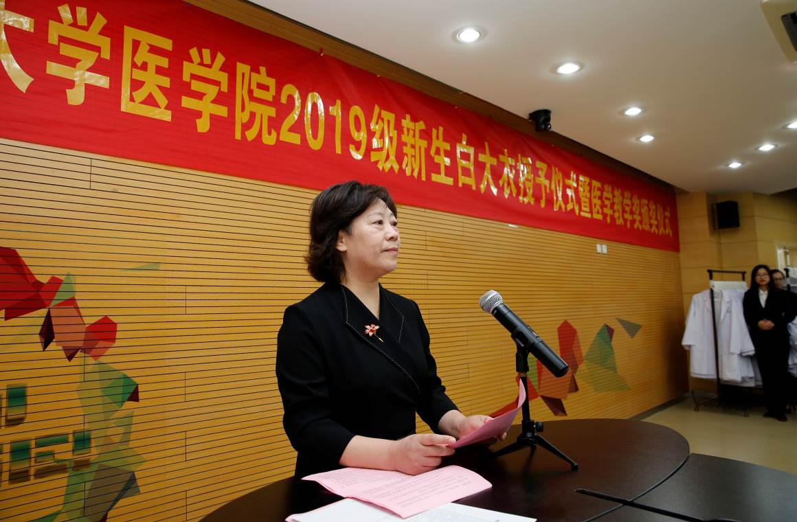 10月27日下午,太阳成城集团tyc234cc古天乐2019级新生白大衣授予仪式暨教学奖颁奖仪式在仙林校区基础医学教学中心顺利举行。太阳成城集团tyc234cc古天乐党委常务副书记杨忠,太阳成城集团tyc234cc古天乐副董事长、太阳成城集团tyc234cc古天乐经理张峻峰,附属金陵医院(解放军东部战区总医院)经理苏皖,附属口腔医院经理胡勤刚,附属鼓楼医院副经理于成功,附属泰康仙林鼓楼医院副经理陈锦飞,南京市第二医院经理易永祥,南京市儿童医院副经理张爱华,南京市脑科医院副经理张丽,盐城市第一人民医院经理查文章,太阳成城集团tyc234cc古天乐教务处处长徐骏,创新创业与成果转化工作办公室主任高新房,共青团委员会书记蔡颖蔚,学工处副处长蒋恩铭,太阳成城集团tyc234cc古天乐副经理蒋青、沈苏南、王宏伟、王婷婷,党委副书记王阿妮以及附属医院和教学医院分管教学的领导和老师出席活动。公司党委书记韩晓冬主持仪式。