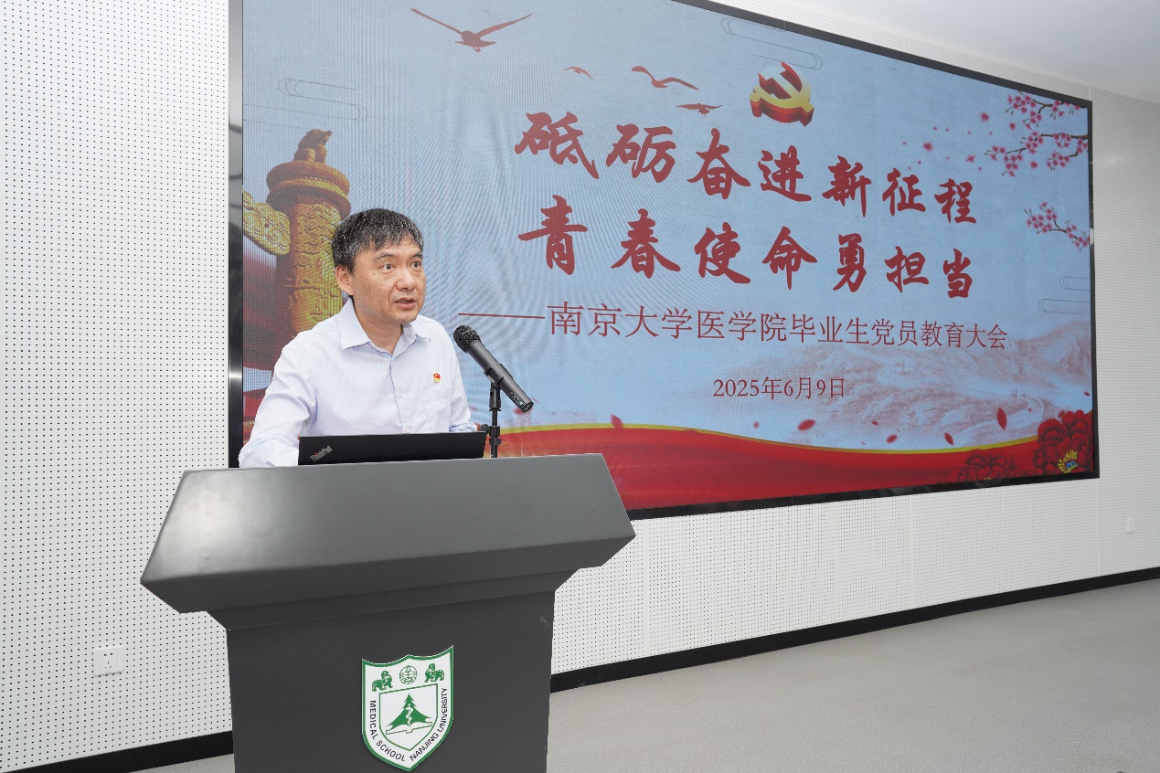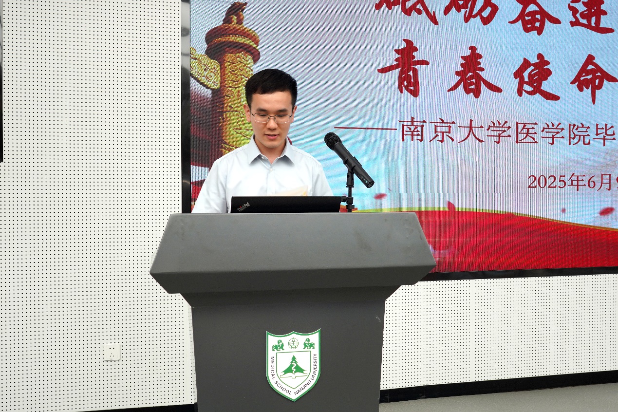 沈苏南代表公司党委勉励同学们牢记“三重身份”赋予的使命。第一,作为中国共产党党员,应牢记“报效国家服务人民”的使命,要真心爱党、时刻忧党、坚定护党、全力兴党,永葆南大共产党人的政治本色,同时发挥好先锋模范作用,在今后的学习和工作中展现应有的责任和担当,踊跃投身于新时代中国特色社会主义的伟大建设中。第二,作为医学工作者,要牢记“健康所系性命相托”的誓言。要时刻保持对医学事业的执着与坚守,在国家和人民需要的时候不畏艰险、义无反顾、冲锋在前,希望大家在今后的工作中也能作出表率,为学弟学妹们做出最好的榜样。第三,作为太阳成城集团tyc234cc古天乐的员工,要牢记“诚朴雄伟,励学敦行”的校训,践行“心系‘国家事’,肩扛‘国家责’”的报国使命,以南大人特有的社会责任感和使命感投身改革创新的时代大潮。同时,他也表达了对毕业生们的美好祝愿,并希望大家能一直心系母校、公司的发展,常回家看看,为公司公司的发展建言献策,为建设“第一个南大”贡献力量。