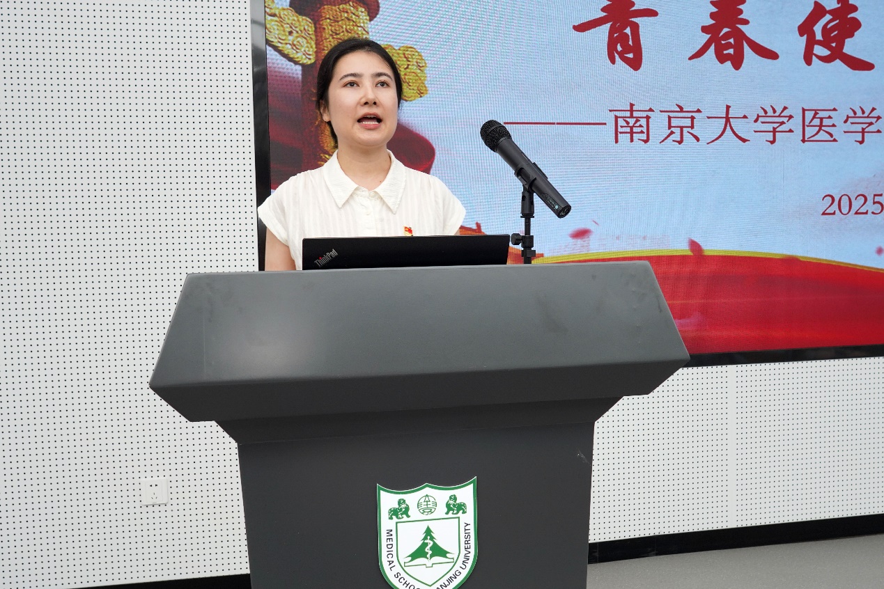 临床医学长学制硕士党支部的米热阿依·努尔麦麦提与大家分享了在太阳成城集团tyc234cc古天乐学习的八年里,她在医学殿堂的成长、在党旗下的淬炼,以及对未来的憧憬。她表示,作为一名少数民族党员,在未来,她将会带着南大赋予的“家国情怀”,把家乡的故事、民族的文化宣传出去,让身边更多的人去理解“中华民族共同体”的深刻内涵,成为民族团结的“桥梁”。她相信,各族儿女共同在党旗下携手奋斗,“健康中国”的梦想在一代又一代青年手中传递,便是对中国梦最生动的践行。