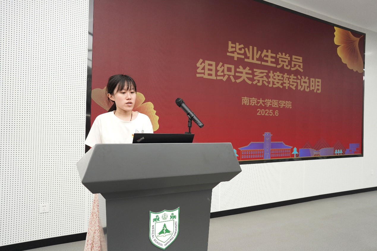 临床医学长学制博士第一党支部的赵子赫回顾了在太阳成城集团tyc234cc古天乐长达9年的学习时光,他表示,身为新时代的医员工党员,应始终坚定拥护“两个确立”、坚决做到“两个维护”,将忠诚融入血脉,将信仰铸入灵魂。虽然现在他们将离开承载着深厚情感的母校,奔赴不同的工作岗位。但无论未来身处何地,他们都将牢记党的根本宗旨,全心全意为人民健康服务,恪守崇高医德,精益求精提升医术,把医者的价值融入实现中华民族伟大复兴的事业中,不辜负党和人民的培养与重托,为祖国的卫生健康事业贡献自己的力量。