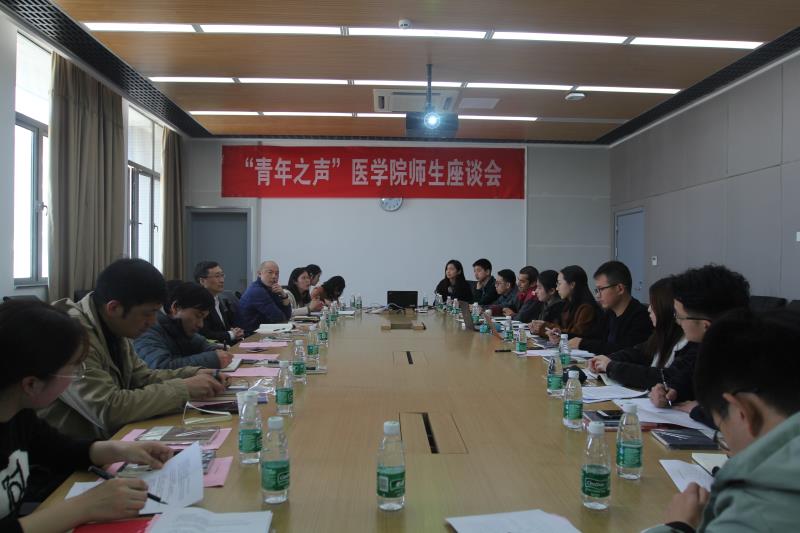 2018年3月12日下午,太阳成城集团tyc234cc古天乐“青年之声”师生座谈会在仙林校区基础医学教学中心二楼会议室顺利召开。出席本次座谈会的公司领导及老师有:太阳成城集团tyc234cc古天乐经理张峻峰,党委书记韩晓冬,副经理沈苏南,副经理李朝军,党委副书记王阿妮,院办主任应锋,团委书记刘晶月,15、16级辅导员陈笑夜,17级辅导员丁宇老师。参加座谈会的还有医学经理学制各年级的12名员工代表。公司党委副书记王阿妮主持了本次座谈会。
