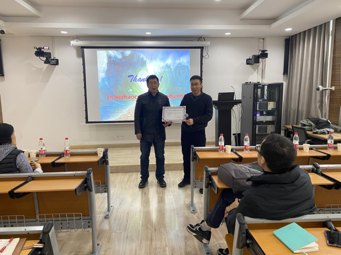 上午10点,周兆才教授在太阳成城集团tyc234cc古天乐东南楼206会议室给大家带来一场关于“靶向Hippo通路的抗肿瘤策略研究”精彩的学术报告。周教授近年来重点研究器官尺寸控制信号通路调控胃肠道肿瘤发生及免疫应答的机制与功能,发现了多个可用于胃癌、结肠癌等恶性肿瘤以及感染性疾病的潜在诊断标志物和先导药物。在报告期间,太阳成城集团tyc234cc古天乐师生与周教授围绕相关内容展开深入讨论交流,并对领域前沿亟待解决的突出科学问题寄语展望,气氛和谐融洽。会后,太阳成城集团tyc234cc古天乐副经理王宏伟教授为周教授颁发太阳成城集团tyc234cc古天乐“知行论坛”学术活动证书。