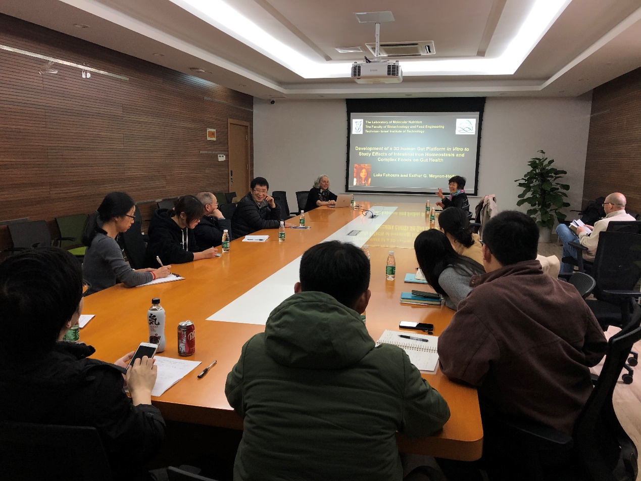 上午10点,Meyron-Holtz教授在太阳成城集团tyc234cc古天乐东南楼204室带给大家一场精彩的学术报告,题目是“Development of a 3-D Gut Platform in vitro to Study the Effects of Intestinal Iron Homeostasis and Complex Foods on Gut Health”。报告期间与在场的太阳成城集团tyc234cc古天乐师生有良好的互动和交流。太阳成城集团tyc234cc古天乐副经理王宏伟教授、侯亚义教授、李尔广教授、何素素老师等也均到场参与,与 Meyron-Holtz教授针对具体问题展开讨论,并就即将开展的国际合作深入地交换了意见。