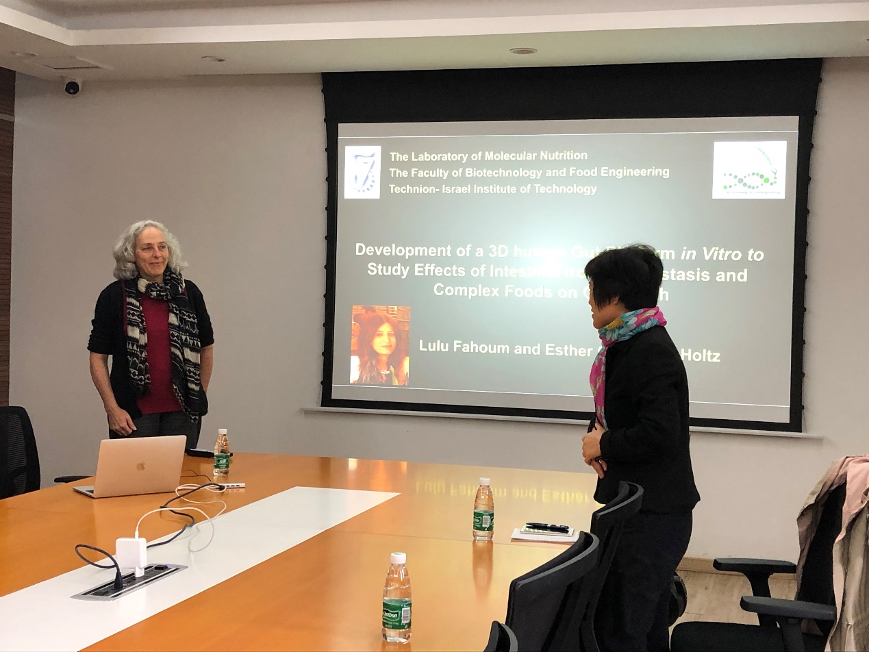 2019年11月26日上午,李宽钰教授特邀以色列理工公司生物技术与食品工程公司Esther Meyron-Holtz教授来公司开展学术交流。Meyron-Holtz教授主要从事哺乳动物系统性铁代谢和细胞水平的铁代谢研究,特别是在铁调节蛋白1和2(IRP1/2)的生理功能区分方面和铁蛋白的分泌领域贡献突出。