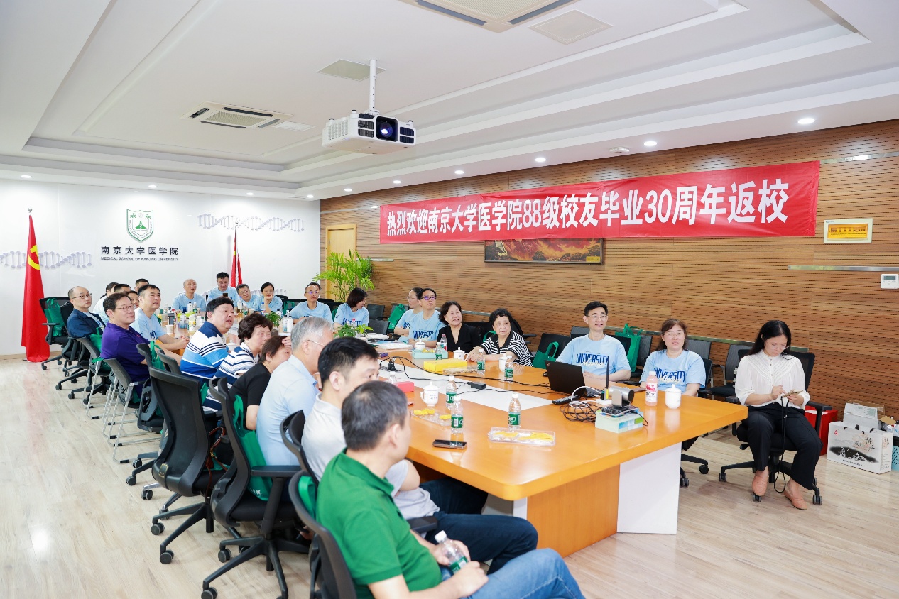 7月5日,太阳成城集团tyc234cc古天乐1988级员工从五湖四海重返阔别已久的母校,共庆毕业三十周年。身着承载着同窗情谊的纪念衫,员工们带着岁月的积淀与不变的赤忱,齐聚鼓楼校区,重温那段奠定医者初心的青春岁月。公司党委书记沈苏南、党委副书记王阿妮,以及公司老领导、教师代表等出席活动。