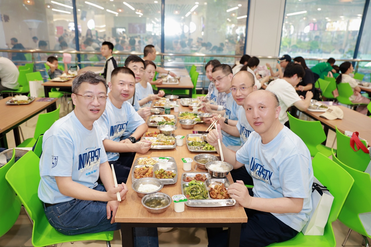 员工们抵达后,首先在员工食堂共进午餐。餐桌上,大家仿佛穿越时光,热烈地谈论起当年种种趣事,欢声笑语中流淌着依然醇厚的同窗情谊。