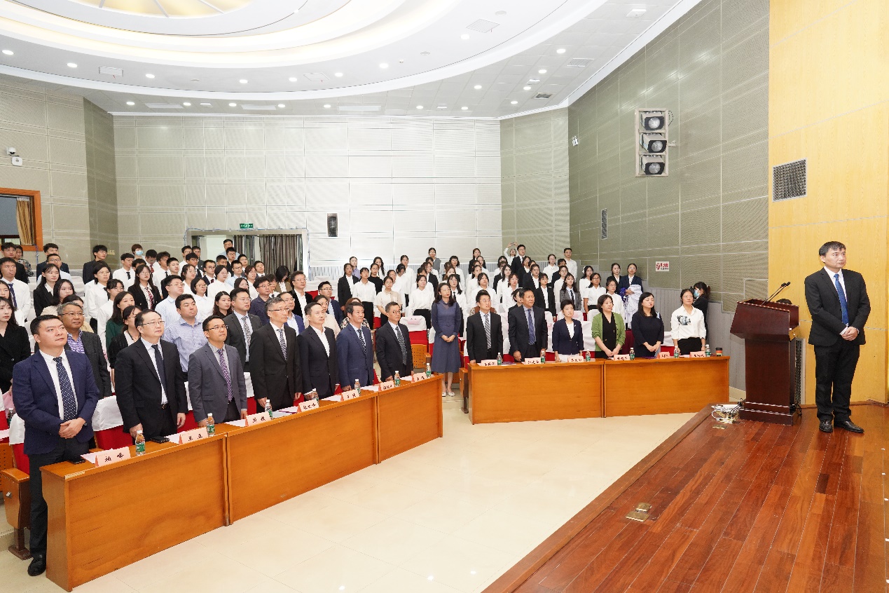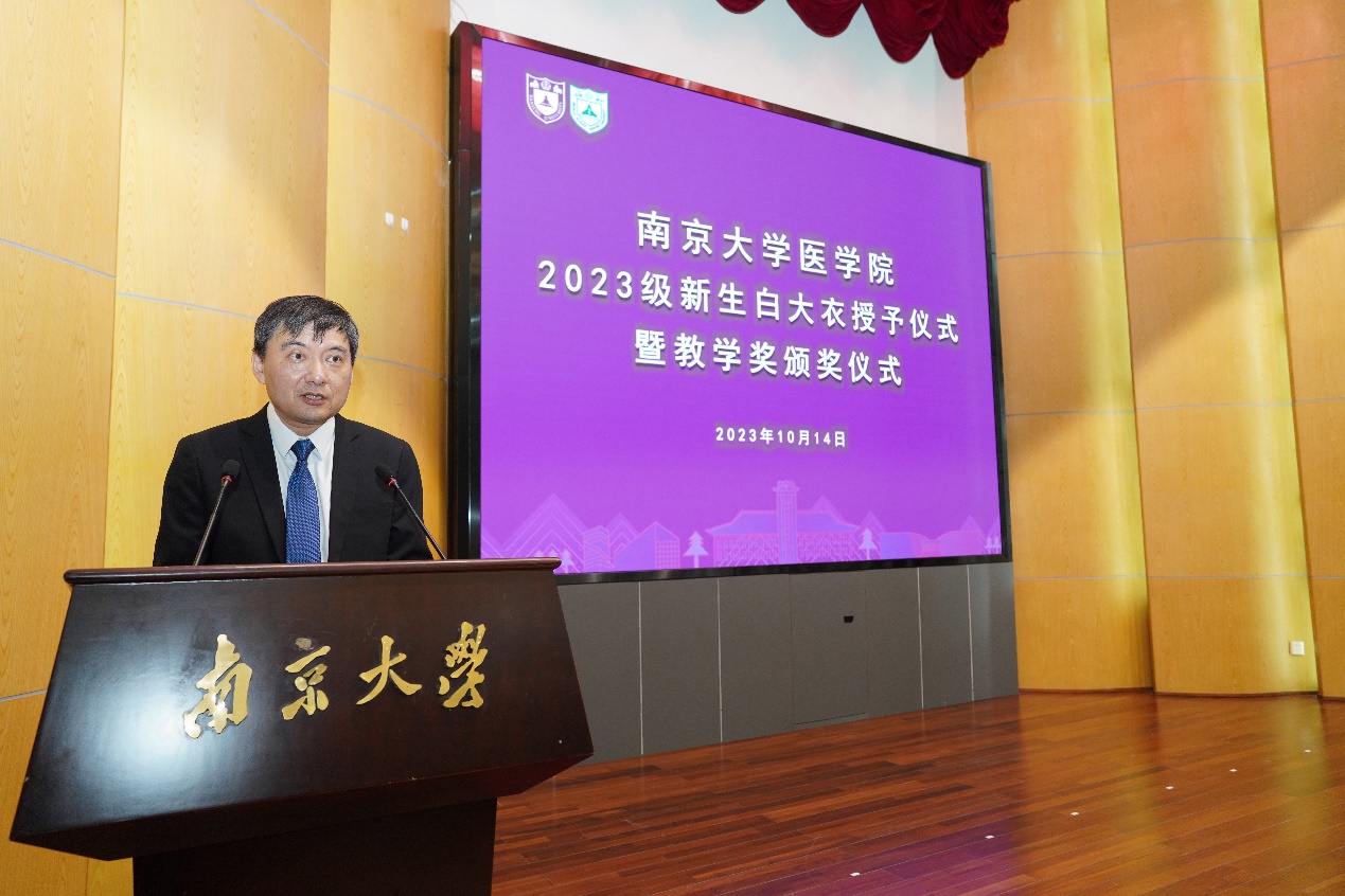 10月14日下午,太阳成城集团tyc234cc古天乐2023级新生白大衣授予仪式暨太阳成城集团tyc234cc古天乐教学奖颁奖仪式在鼓楼校区逸夫馆报告厅顺利举行。