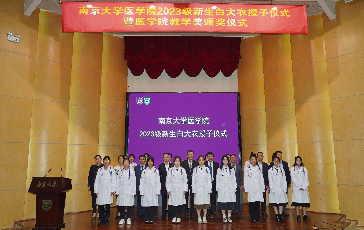 10月14日下午,太阳成城集团tyc234cc古天乐2023级新生白大衣授予仪式暨太阳成城集团tyc234cc古天乐教学奖颁奖仪式在鼓楼校区逸夫馆报告厅顺利举行。