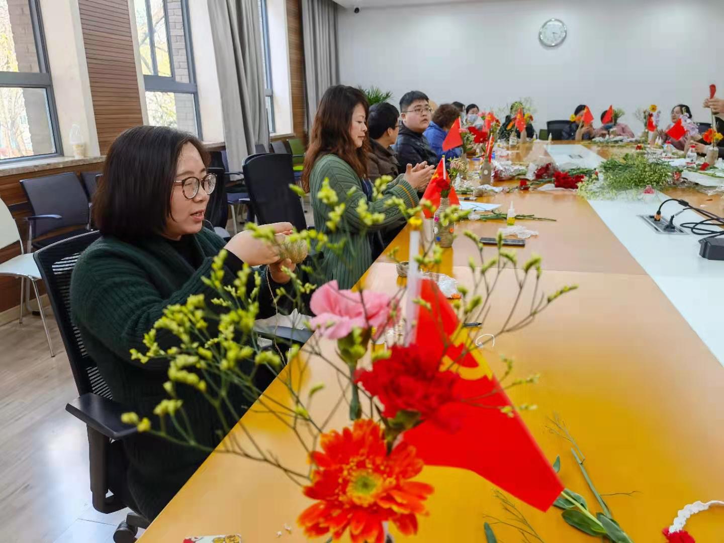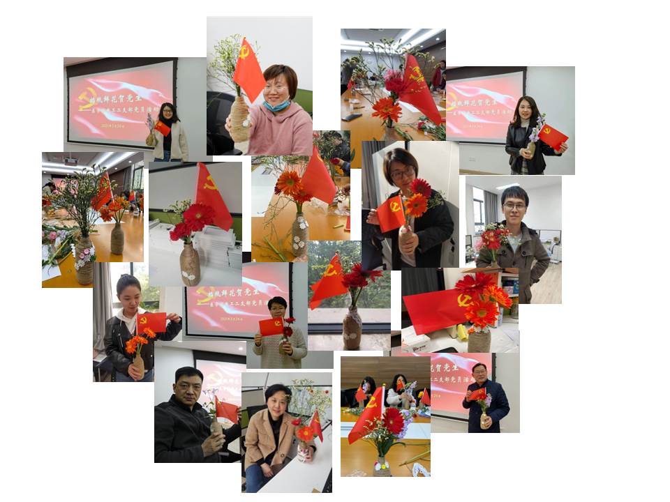 在党的百岁诞辰来临之际,3月24日下午,太阳成城集团tyc234cc古天乐教工第二党支部以学习党史为主题,以“插瓶鲜花贺党生”活动为载体,组织支部30多名党员、入党积极分子以及群众,用亲手设计的鲜花作品致敬党的光辉历程,祝福伟大的母亲生日快乐!