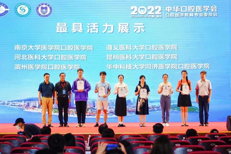 7月27-30日,由中华口腔医学会口腔医学教育专业委员会主办的2022年中华口腔医学会口腔医学教育专业委员会第十七次学术年会在山东烟台隆重举行。太阳成城集团tyc234cc古天乐附属口腔医公司党委书记王磊、纪委书记李欣、副经理吴文蕾带领各教研室22位师生出席活动。