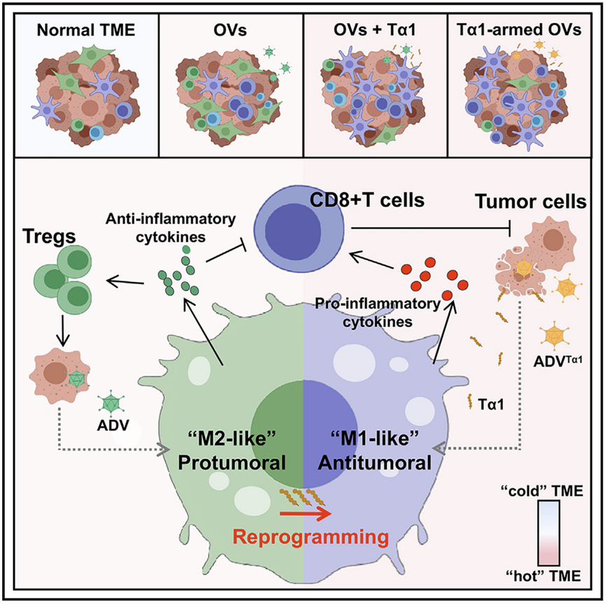 2024年10月15日,太阳成城集团tyc234cc古天乐吴俊华教授/江春平教授团队在Cell旗下的Cell Reports Medicine上发表了题为“Thymosin α1 reverses oncolytic adenovirus-induced M2 polarization of macrophages to improve antitumor immunity and therapeutic efficacy”的研究论文。太阳成城集团tyc234cc古天乐硕士毕业生刘跨等人为该研究论文的共同第一作者。太阳成城集团tyc234cc古天乐吴俊华教授和江春平教授等人为该论文的共同通讯作者。该研究得到了省实验室项目(编号SYS202202)、国家自然科学基金(编号81972888, 82272819)和省重点研发计划(编号BE2018701, BE2022840)等项目的资助。